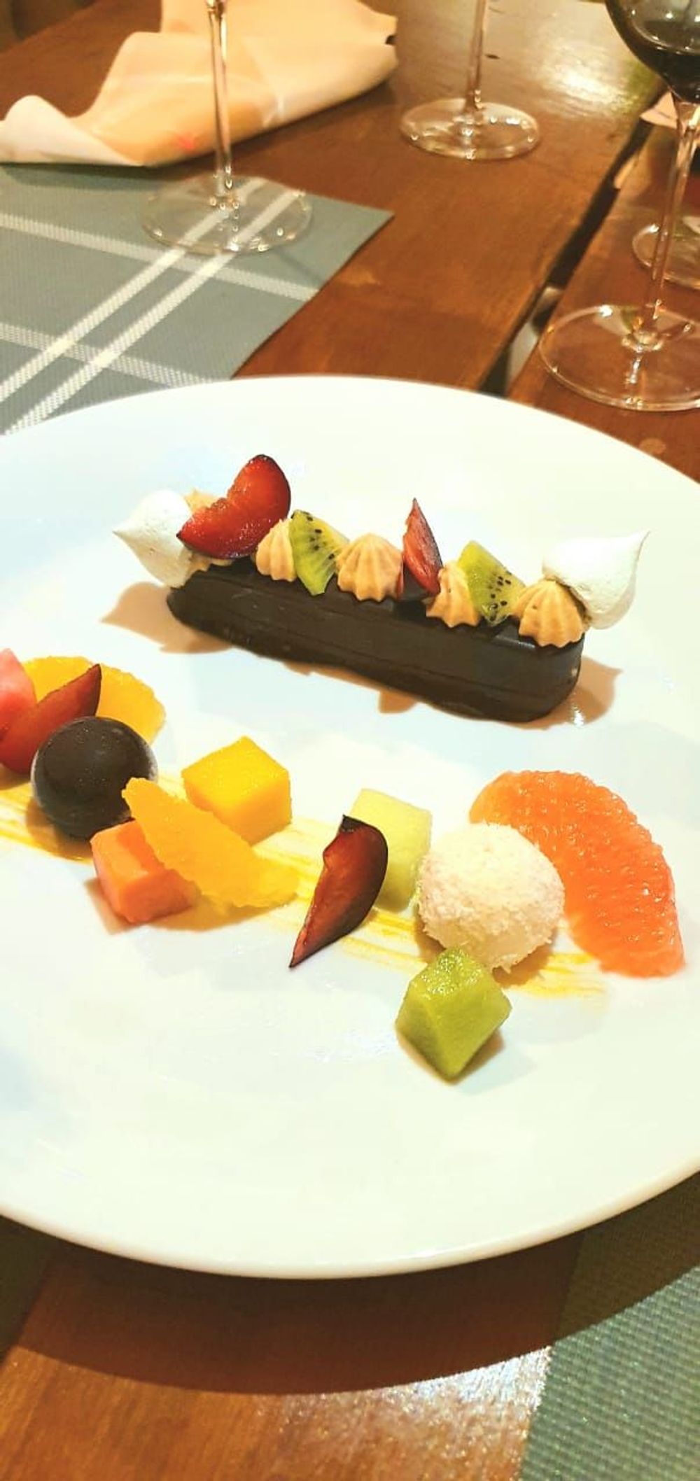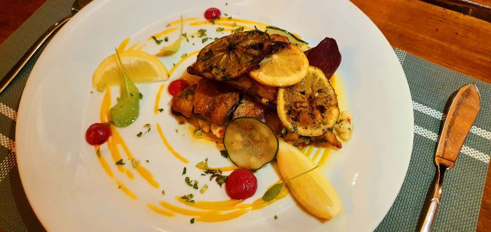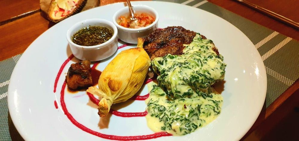 Para comenzar, hay un abanico de exquisitas entradas elaboradas como langostinos, mollejas con brotes de bambú, ensaladas y sopas del día. Los platos principales se dividen a su vez en pastas con deliciosas salsas y arroces, en los cuales priman los hongos y la calabaza; carnes y pescados de la mejor calidad acompañados por guarniciones autóctonas y vegetales variados. Y para finalizar, los exquisitos postres como parfait de Baileys y maracuyá, bombón Selvaje, cheesecake de limón y helado de caipirinha, entre otros.