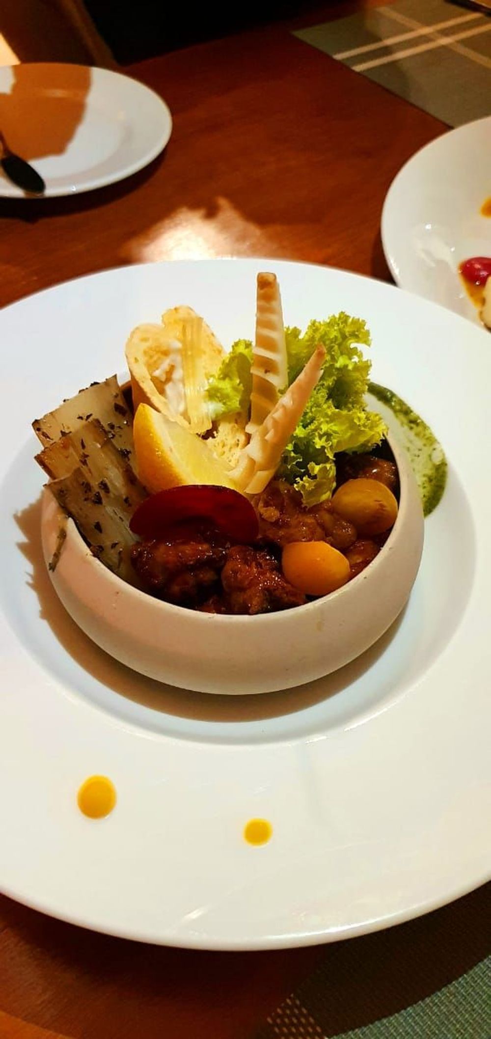 Green Mandioca, que ofrece gastronomía local de alto nivel tanto para huéspedes como para visitantes. Propone una carta de lujo que incluye especialidades autóctonas y guarda el respeto por la estación y producción de materias primas locales, obteniendo sus productos de la huerta propia.